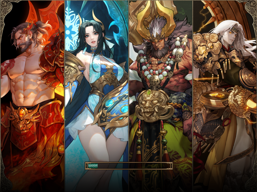 Fantasy game loading animation with four character panels